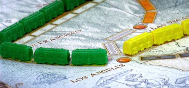 Ticket to Ride continues in the tradition of Days of Wonders big format board games featuring high-quality illustrations and components including: an oversize board map of North America, 225 custom-molded train cars, 144 illustrated cards, and wooden scoring markers.