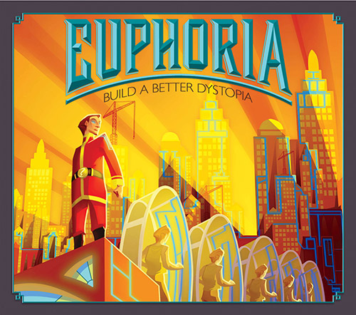 In Euphoria, you lead a team of workers (dice) and recruits (cards) to claim ownership of the dystopian world. You will generate commodities, dig tunnels to infiltrate opposing areas, construct markets, collect artifacts, strengthen allegiances, and fulfill secret agendas.