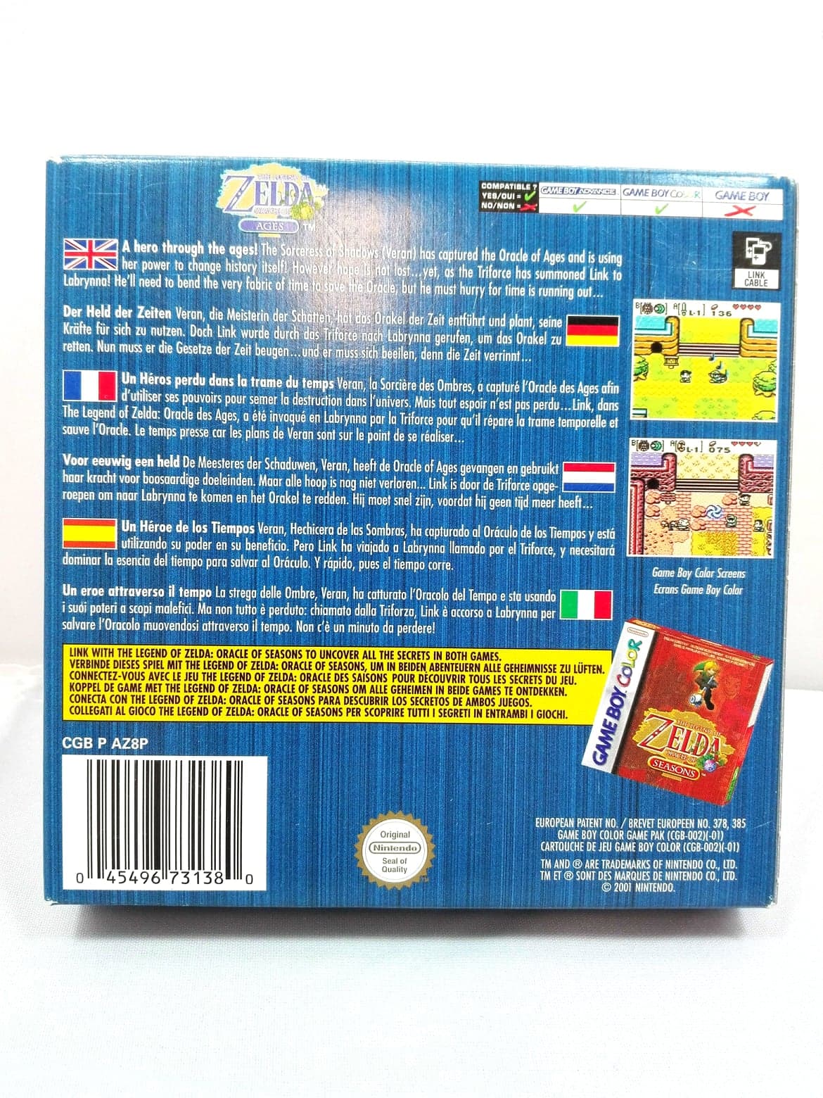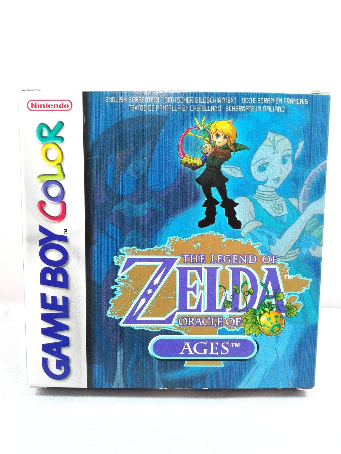 Using the legendary power of the Triforce, Link travels to a distant land known as Labrynna where Veran, the Sorceress of Shadows, has developed a scheme to alter Labrynnas past. Through trickery and deceit, Veran harnesses the power of Nayru, the Oracle of Ages, and travels 400 years into the past. Before the Sorceress of Shadows can complete her dark mission, Link must use the Harp of Ages to save the day.