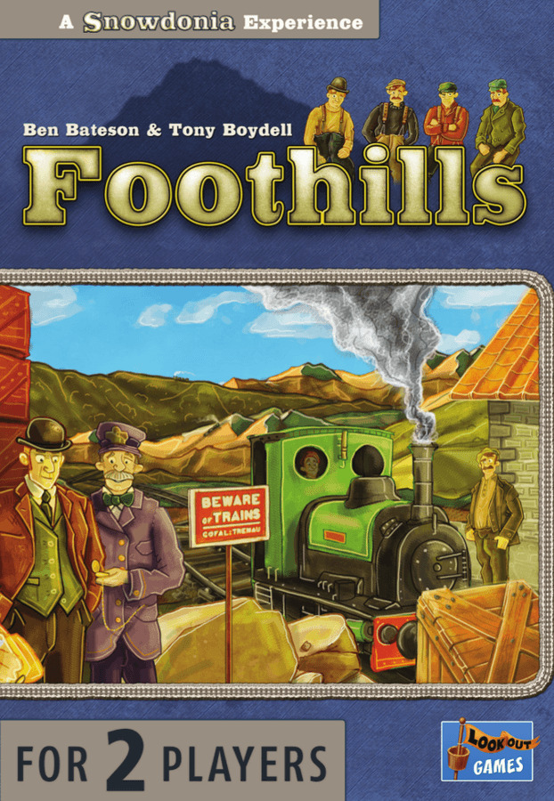 Foothills is a tactical and intriguing two-player card game from new designer Ben Bateson and the designer of Snowdonia, Tony Boydell. Using your five action cards cleverly, collect resources, remove rubble, build track and stations, and use the action spaces you unlock, all the while collecting more victory points than your opponent. In the end, the player with the most victory points wins!