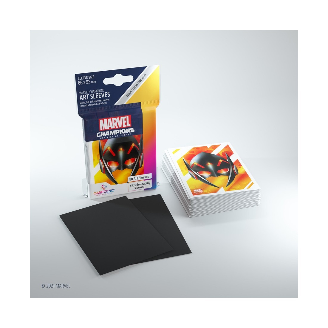 The first official Marvel Champions Art sleeves. These high-quality, matte, full-color printed, and officially licensed card sleeves are the eye-catcher for every hero deck. These borderless printed sleeves are optimized in size for Marvel Champions and other TCG, LCG, and provide a great shuffle feel. They come in 22 different designs and are perfect for double-sleeving.