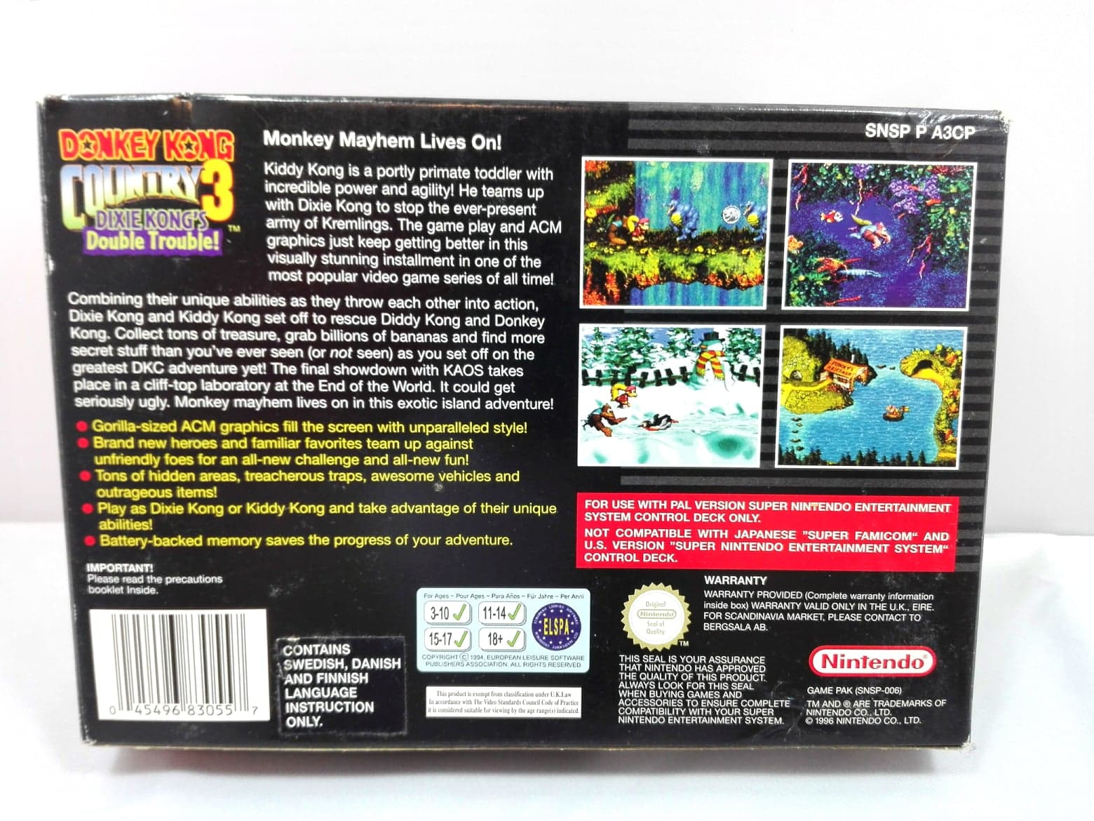Donkey Kong Country 3: Dixie Kongs Double Trobule är lika roligt, lika spännande och nu har utvecklarna Rare verkligen utvunnit maximal kapacitet från "Silicon Graphics" teknologin och det märks klart och tydligt att detta spel är det snyggaste i Donkey Kong Country serien men är det då lika roligt? Självklart är svaret. Ända problemet var inte spelet i sig, men när Nintendo gav ut det tredje spelet för Super Nintendo den 19 December 1996 i Europa vilket var sent under konsolens livstid, faktiskt ungefär 3 månader innan Nintendo skulle lansera Nintendo 64 i Europa (1 Mars 1997) så även om spelet var oerhört bortskämt snyggt och bra så var fokusen bort riktad från SNES till favör mot den mycket kraftfullare Nintendo 64 som skulle ta över efter SNES eran och med lovande spekl som Super Mario 64, The Legend of Zelda: Ocarina of Time mf spel som fick folk att tappa andan så är det inte så oförståeligt.