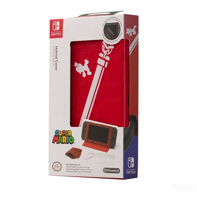 The PowerA Nintendo Switch Hybrid Cover helps protect your Nintendo Switch from bumps and scratches. It has a wrap-around design and magnetic closure to keep your Switch secure. You can also fold the cover over to use it as a stand. As a bonus, the cover also comes with a screen protector and a cleaning cloth.