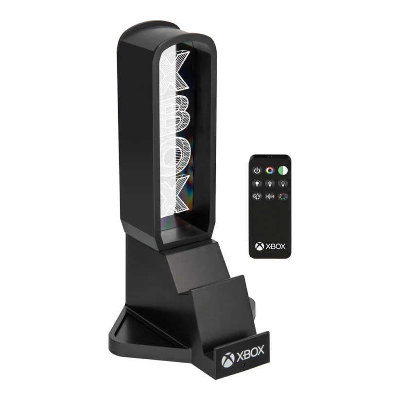 Standing at 30cm (12) tall, the headset holder also functions as a console controller cradle and phone stand, maximising your desk space. Equipped with two USB-C charging ports, you can power your devices with ease. The RGB LED light panel forms the headphone stand, offering three brightness settings, music reactive mode, colour phasing and colour select modes - all easily controlled with the included remote. Power the light with the permanently attached USB cable. The Xbox 3-in-1 Charging and Tech Accessories Stand is a stylish, versatile accessory for every gamers desk.