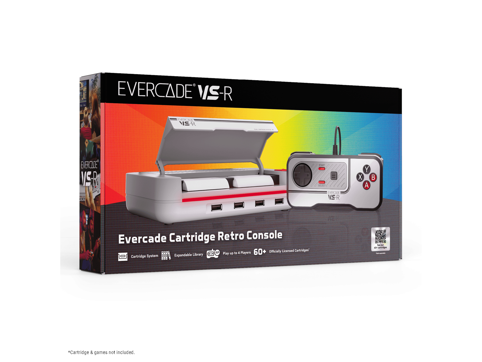 The Evercade VS-R Solo is the newest variant of the award-winning home retro gaming console from Evercade. This version only includes the hardware. Styled in a new retro inspired colour scheme, the Evercade VS-R Solo fits in great with your console collection! This console is designed to be played on your TV and has been optimised for a home gaming experience. The new Evercade VS-R Solo console supports Evercade cartridges and brings arcade, console, and home computer gaming into your hands with over 600 games across 60+ physical Evercade cartridge collections - five decades of gaming available to play on one device. The console also features a dual cartridge slot for more gaming choice, 4 USB ports for up to 4 player multiplayer action and built-in WiFi for easy updates.