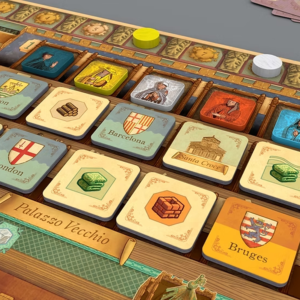 I Calimala skickar du ut familjemedlemmar för att producera och exportera tyg till Europas marknader, finansiera konst och arkitektur, och positionera dig i stadens styrelse. Varje handling öppnar nya möjligheter - och varje placering kan ge poäng även åt andra spelare.
