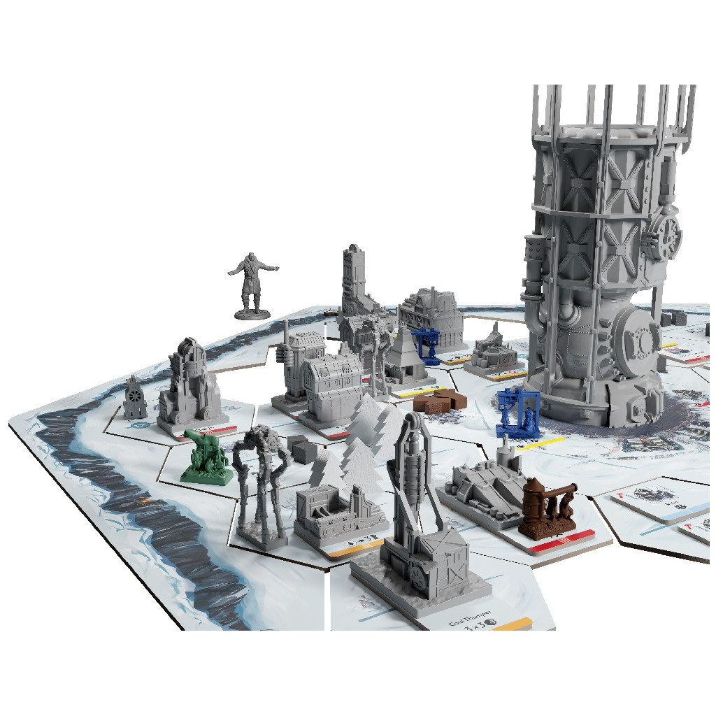 Frostpunk: The Board Game - Miniatures Expansion contains 120 plastic miniatures in 41 different sculpts, bringing the ultimate look of Frostpunks final city - Earth - to the game board.