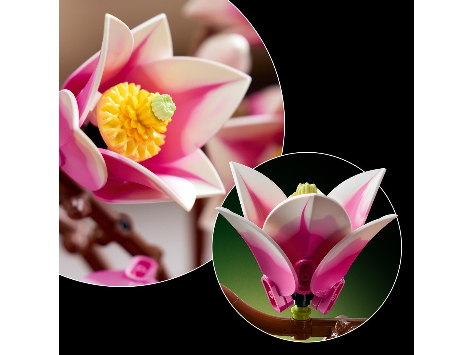 Innehåller 5 LEGO® magnoliagrenar som visar blommorna i olika stadier