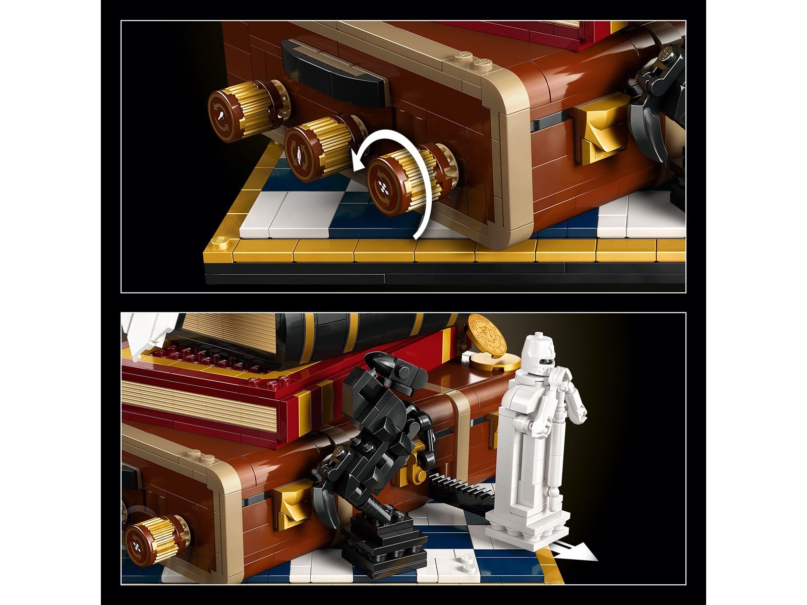 Vrid på de 3 rattarna på Harry Potters koffert för att aktivera roliga funktioner