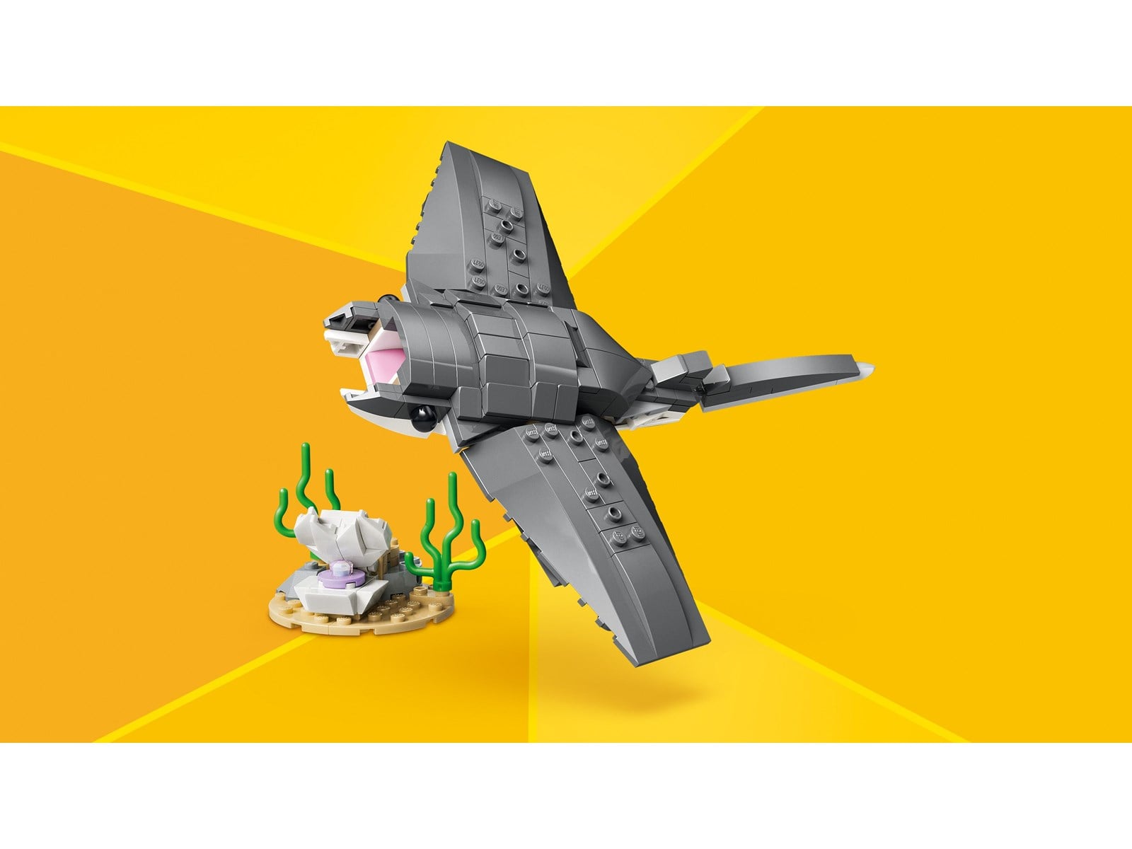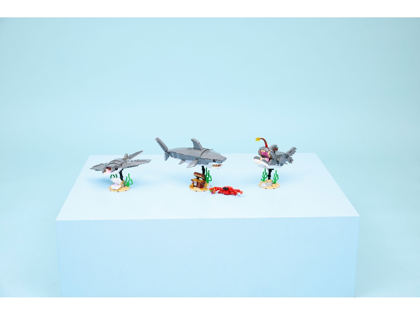 Bygg och lek med 3 olika havsdjur: en haj, en marulk och en manta