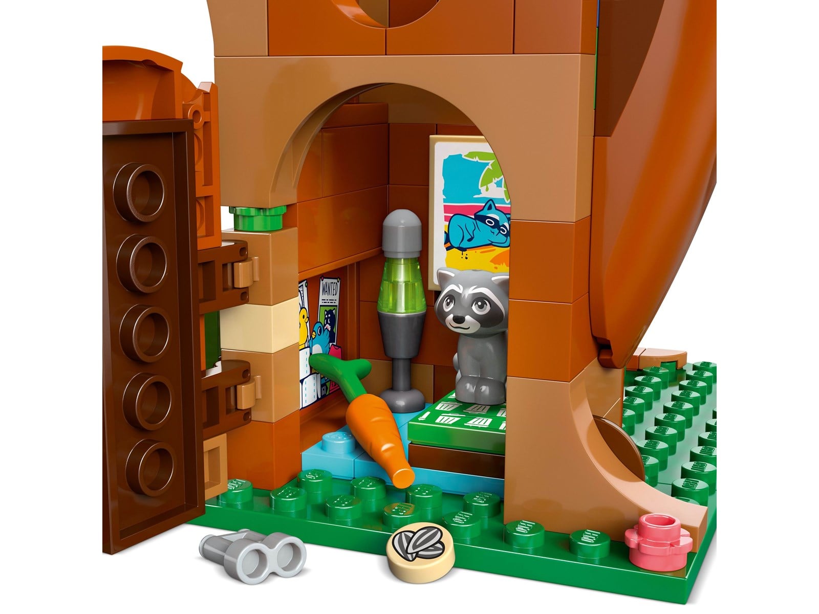 Liann, Autumn, Leo och Zac har byggt den ultimata platsen att hänga på! En trädkoja där det alltid är roligt! Vännerna klättrar uppför stegen och hunden Pickle använder hissen. Inuti finns det utrymmen för att leka, laga mat och sova, plus en rutschkana. Använd de speciella plattorna och fönstren för att specialdesigna trädkojan. Kan du hitta tvättbjörnens dolda hem, där det finns hemliga skatter