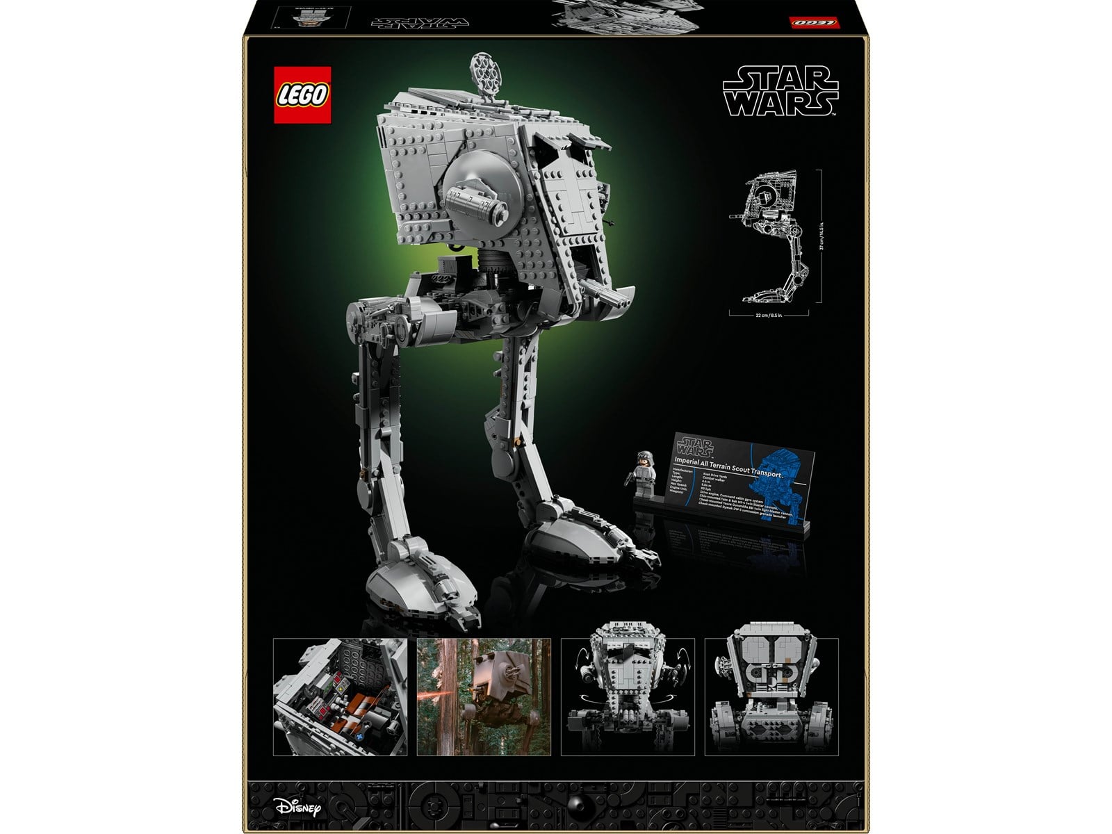 Låt dig förflyttas till slagfälten på Endor när du bygger Ultimate Collector Series versionen av en AT-ST från den klassiska Star Wars sagan. Öppna den övre luckan för att se den detaljerade cockpiten. Vrid AT-ST:s huvud. Öppna och stäng utkikshålen och justera laserkanonerna. Visa upp din skapelse bredvid den unika LEGO® Star Wars minifiguren av en AT-ST-förare och informationsskylten.