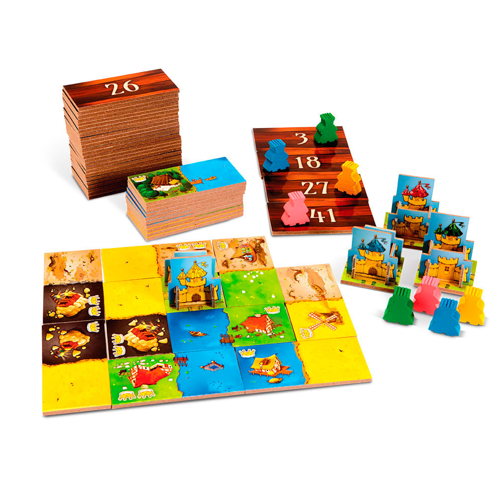 Spelarna väljer i turordning dominobrickor som visar olika landskap som skogar, åkrar eller sjöar. Varje bricka måste placeras smart så att områdena växer ihop och ger flest poäng. Men se upp - de andra kungarna vill ha precis samma värdefulla marker.