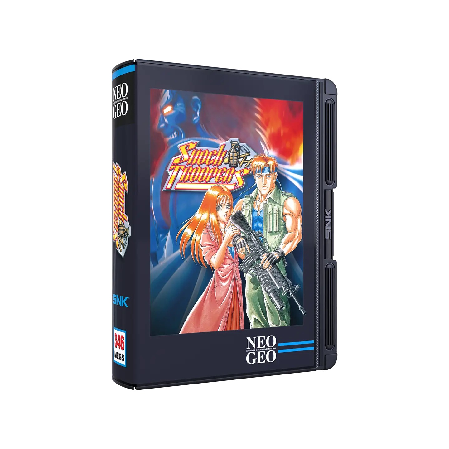 Prepare for relentless top-down action in Shock Troopers, one of the most intense and replayable run-and-gun shooters on the NEOGEO AES+. Originally released in arcades in 1997, this explosive classic delivers fast-paced combat, branching paths and massive bosses in a true showcase of 2D sprite power. Choose from an eight-member special forces team - each with unique abilities - or select Team Battle Mode to combine three characters for strategic flexibility. Fight across jungles, military bases, deserts and enemy strongholds as you dismantle the terrorist organisation Bloody Scorpion in a mission packed with vehicles, heavy artillery and screen-filling explosions. With tight controls, multiple routes, varied character playstyles and high-score chasing appeal, Shock Troopers offers outstanding depth and replay value for both solo and co-operative play.